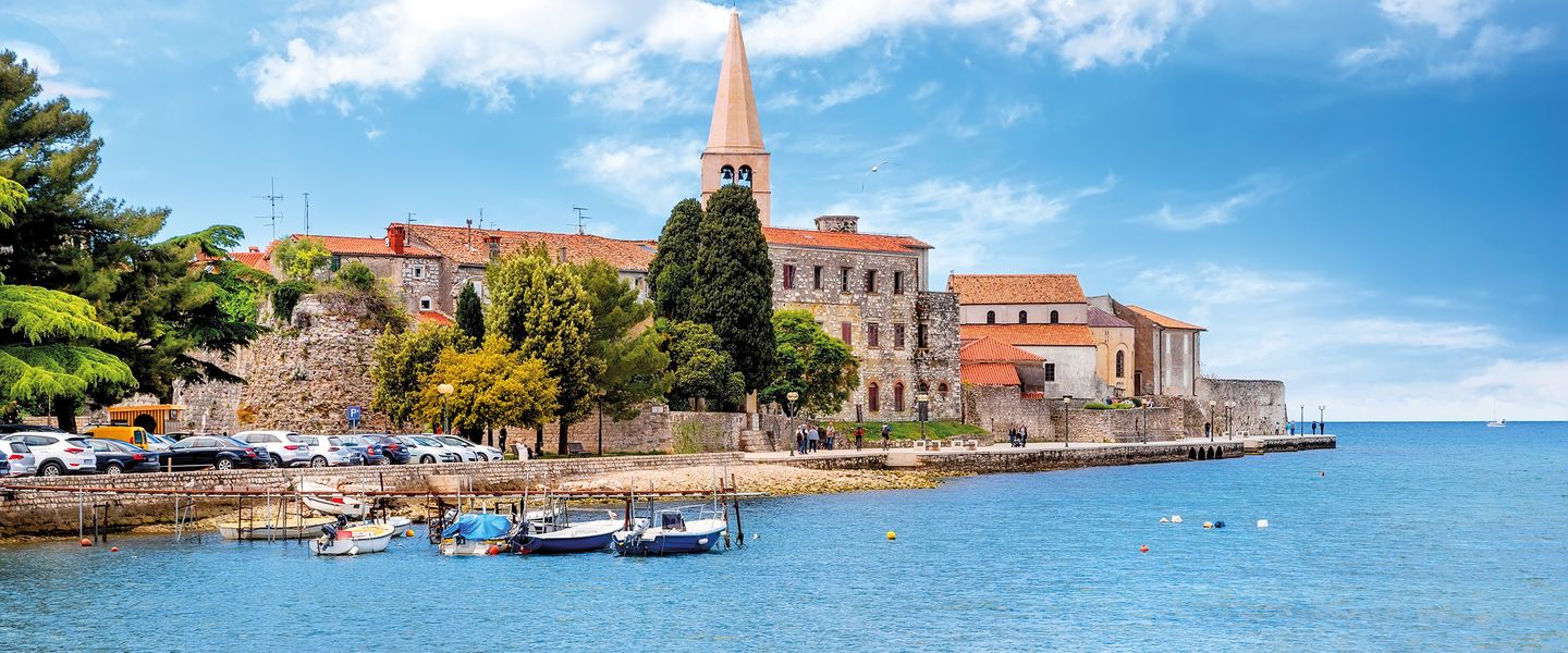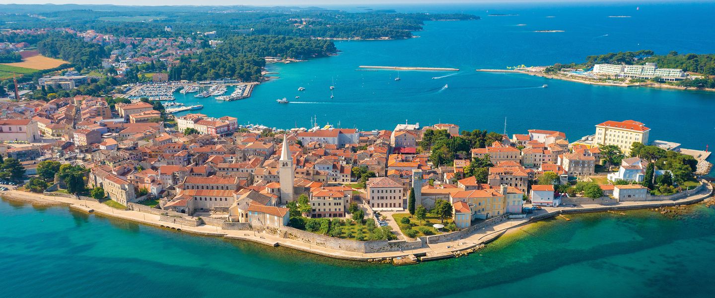 Poreč ist eine charmante Küstenstadt in Kroatien, die sich in der Region Istrien befindet. Die Stadt liegt an der Westküste der Halbinsel Istrien und ist bekannt für ihre malerische Altstadt, die von römischer Architektur geprägt ist, sowie für ihre schönen Strände und das klare Wasser der Adria. Poreč ist berühmt für die Euphrasius-Basilika, ein UNESCO-Weltkulturerbe, die für ihre beeindruckenden Mosaiken und ihre byzantinische Architektur bekannt ist. Die Stadt hat eine reiche Geschichte, die bis in die Antike zurückreicht, als sie als römische Kolonie gegründet wurde. Heute ist Poreč ein beliebtes Touristenziel, das eine Vielzahl von Freizeitaktivitäten und kulturellen Veranstaltungen bietet.
