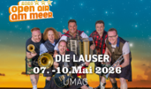 Erleben Sie mit uns unvergessliche Tage beim Open Air am Meer 2026. Gute Stimmung und Gänsehautmomente sind beim mittlerweile legendäre Schlager- und Volksmusik Open Air direkt am Meer inklusive. Mit dabei sind Maite Kelly, Matthias Reim, Mike Leon Grosch, Saso Avsenik & seine Oberkrainer, Oliver Haidt, die Lauser, Christin Stark, Anna-Carina Woitschack und die Partykrocha.
