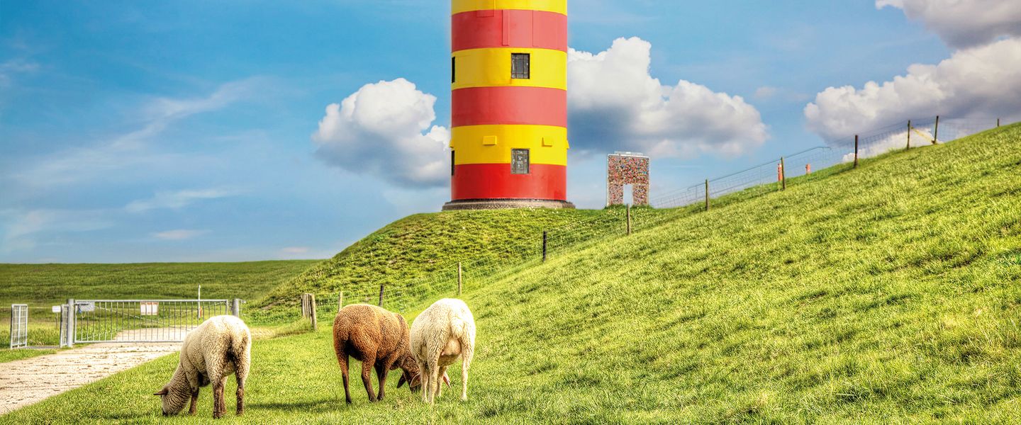 Ostfriesland erwartet seine Besucher mit vielen Facetten. Deiche und weitläufige, grüne Landschaften, Ebbe und Flut, Backsteinhäuser mit bunt blühenden Vorgärten und natürlich die raue Küste mit weitläufigen Sandstränden.