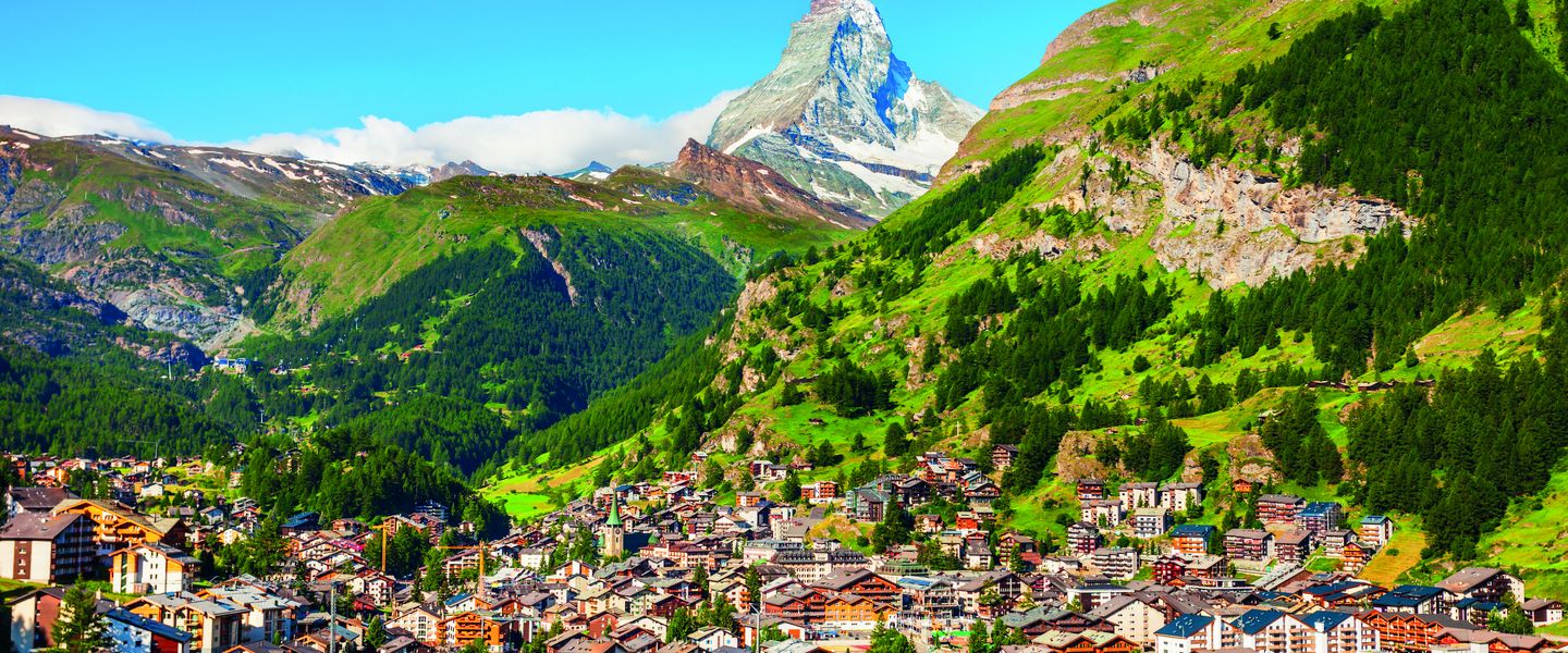 Zermatt ist eine weltberühmte Gemeinde in der Schweiz, die im Kanton Wallis liegt. Sie befindet sich am Fuß des Matterhorns, einem der bekanntesten Berge der Alpen. Zermatt ist berühmt für seine atemberaubende alpine Landschaft, die erstklassigen Skimöglichkeiten und die zahlreichen Wanderwege, die im Sommer und Winter zahlreiche Touristen anziehen. Die Gemeinde hat eine lange Geschichte als Bergsteigerdorf und wurde im 19. Jahrhundert zu einem beliebten Ziel für Reisende und Bergsteiger. Zermatt ist autofrei, was zur Erhaltung der unberührten Natur und der ruhigen Atmosphäre beiträgt.
