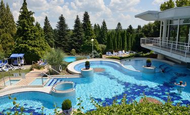 Hévíz ist eine Stadt in Ungarn, die im Komitat Zala liegt, in der Nähe des Balaton, des größten Sees Mitteleuropas. Sie ist vor allem für ihren Thermalsee bekannt, der als einer der größten natürlichen Thermalseen der Welt gilt. Hévíz zieht jährlich zahlreiche Touristen an, die die heilenden Eigenschaften des Wassers nutzen möchten, das reich an Mineralien ist und eine Temperatur von bis zu 38 Grad Celsius erreichen kann. Die Stadt hat eine lange Geschichte, die bis in die römische Zeit zurückreicht, als die heilenden Eigenschaften der Thermalquellen bereits geschätzt wurden. Im 18. Jahrhundert begann die Entwicklung von Hévíz als Kurort, was zur heutigen Bedeutung der Stadt als Wellness- und Erholungsziel führte.